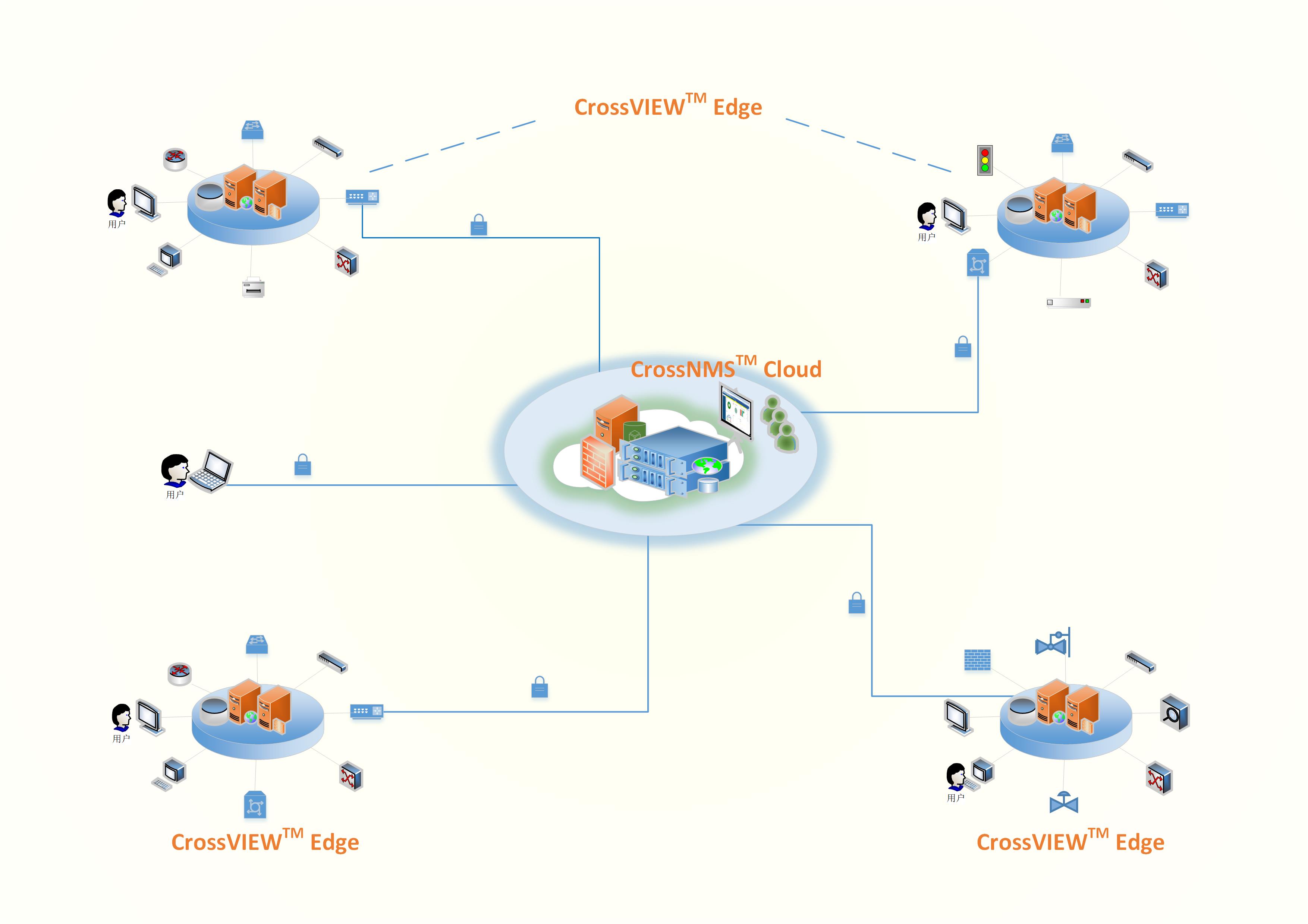 CrossNMS 不僅可以通過(guò)安全的方式連接不同種類(lèi)和數量的工業(yè)設備,而且通過(guò)CrossView數據網(wǎng)關(guān)連接不同地域的工業(yè)設備群,使得